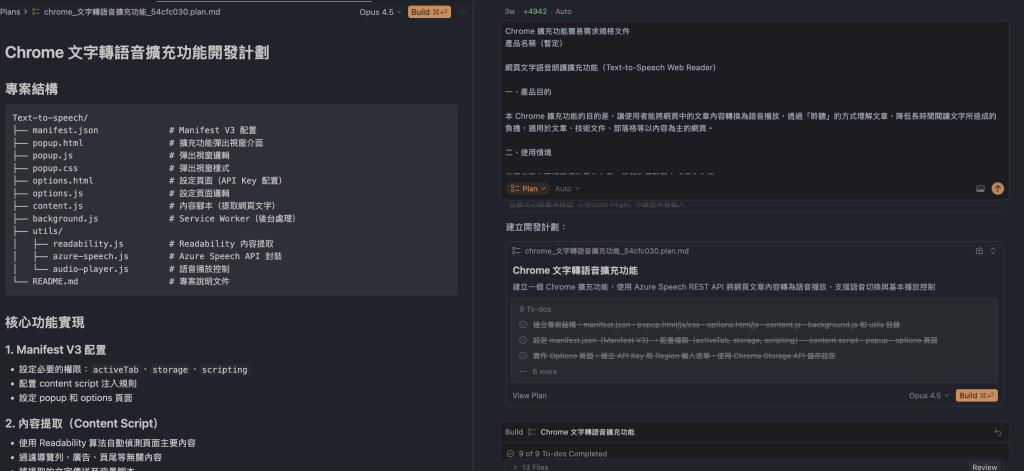一開始是在 Azure Speech Studio 裡貼文字朗讀,接著試著用 Cursor 實作在瀏覽器內用,extension 朗讀網頁內容。